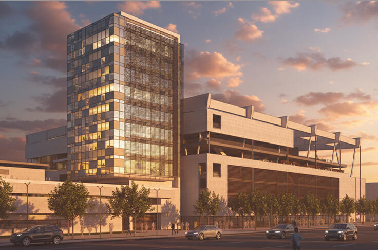 La torre principal se distingue por su fachada de doble piel con elementos de control solar, mientras que los volúmenes horizontales albergan los programas educativos y religiosos. La composición arquitectónica privilegia la transparencia y la conexión visual entre los diferentes usos, creando un complejo que funciona tanto como hito urbano como centro comunitario.