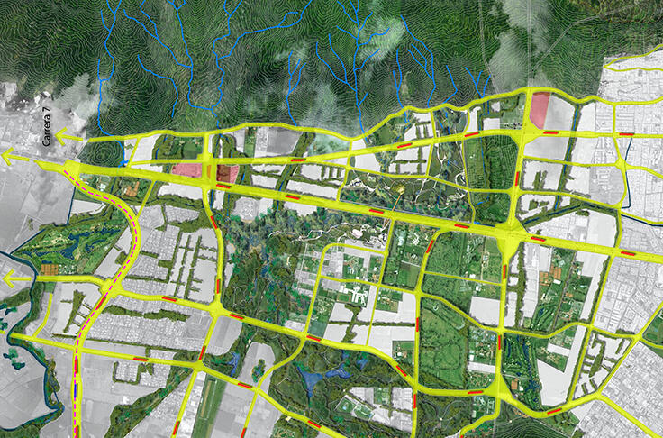 Para lograr este objetivo, el proyecto propuso la consolidación de una pieza mayor de intervención donde se integran elementos ambientales existentes y nuevos. El área definida comprende 38,5 km² que soportaría el desarrollo de 350.000 nuevas viviendas, la consolidación de 2,25 km² de nuevos parques, 6,03 km² de corredores ecológicos y 2,74 km² dedicados a equipamientos educativos y deportivos.2017, Bogotá, Colombia, Área: 38,5 km²