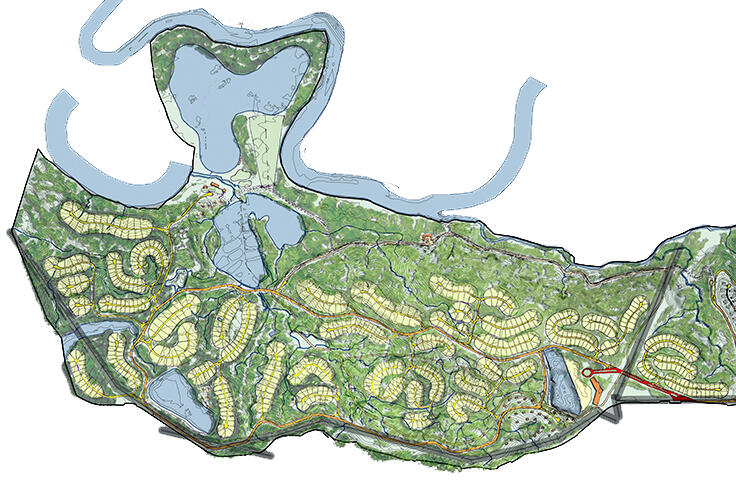 La propuesta crea un conjunto residencial suburbano en armonía e íntima relación con el paisaje circundante, donde cada vivienda se implanta respetando las características naturales del terreno. El diseño urbanístico privilegia la conservación del ecosistema existente mientras proporciona un desarrollo habitacional de calidad que maximiza las vistas panorámicas al río e integra la arquitectura con el entorno natural.